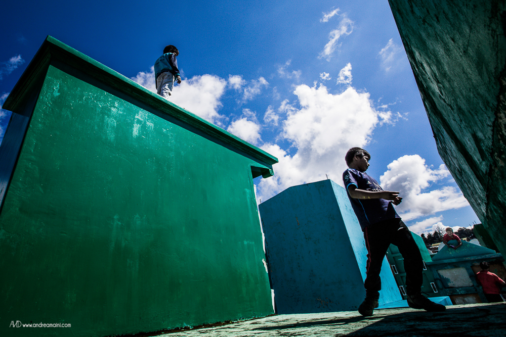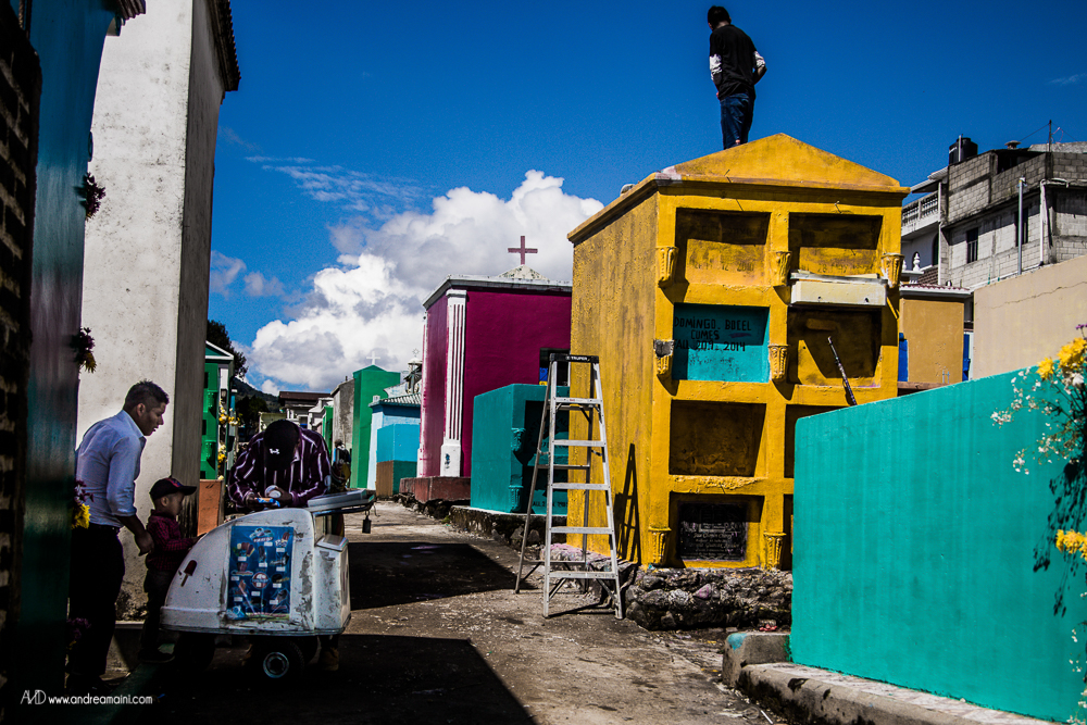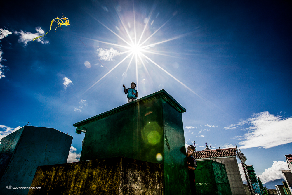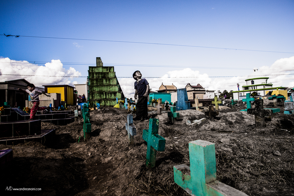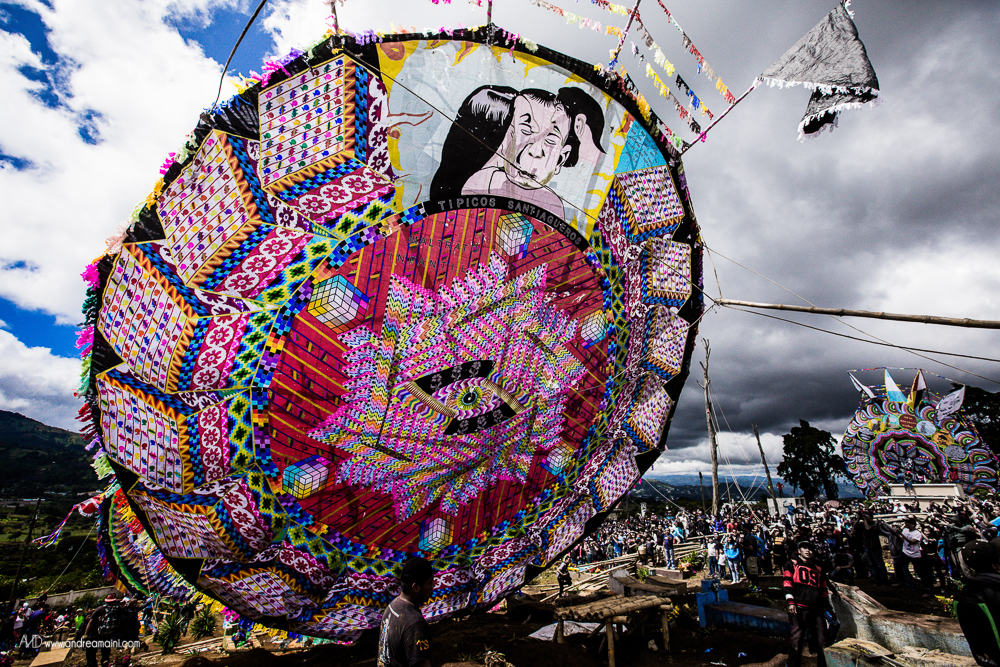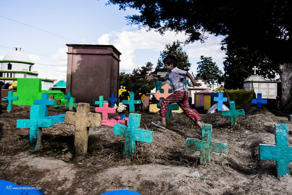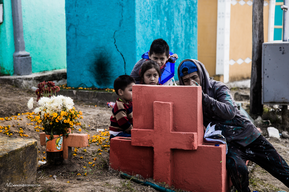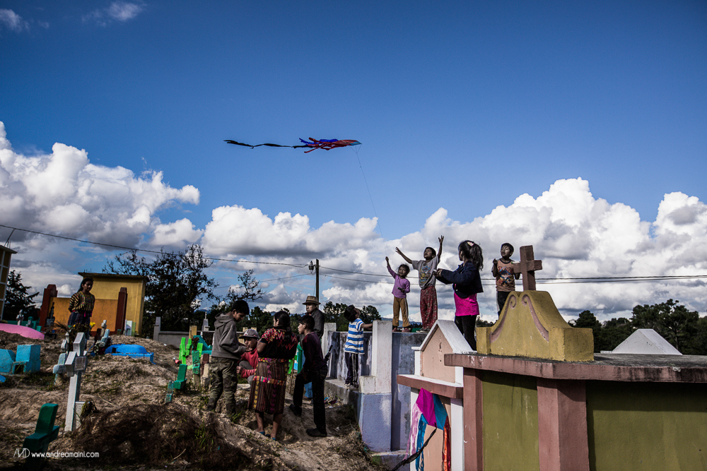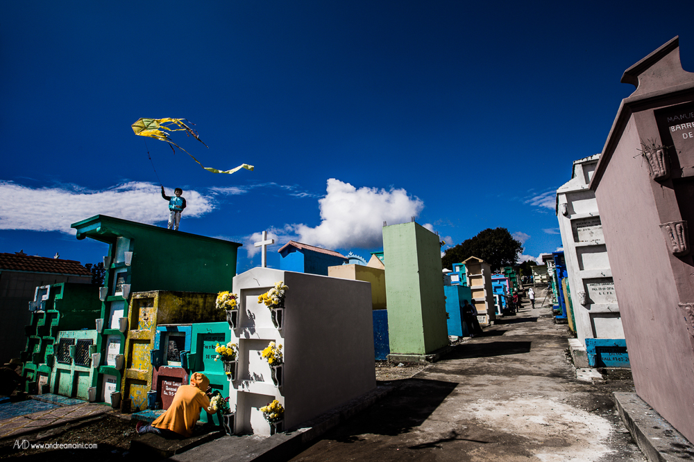 C’è un giorno speciale nell’anno, un giorno che cancella i confini tra il cielo e la Terra, tra il dolore ed il divertimento, tra le lacrime e la festa, tra i vivi ed i morti. È il giorno in cui i guatemaltechi si vestono a festa, impacchettano il loro cibo e si preparano a passare giorno e notte nei cimiteri, con le anime dei loro cari defunti che in questa occasione straordinaria tornano sulla Terra per festeggiare con loro, mangiando i piatti tipici, bevendo, cantando, ballando per tutta la notte. La grande festa richiede preparazione nei giorni precedenti l’evento, quelli in cui aggirandosi tra le tombe si osserva un grande fermento di lavoro ed allegria, perché ogni tomba viene dipinta di colori sgargianti, ogni nome su ogni lapide viene ripassato, ogni tumulo funerario viene ricoperto di fiori. Tra uomini che colorano di verde il sepolcro di famiglia, ragazzini che osservano attenti scrivere il nome del proprio affetto, fedeli che pregano davanti alle offerte di cibo ed incenso che brucia, i bambini fanno volare alti i loro aquiloni, che si crede siano la via per le anime per raggiungere il paradiso, ed il modo in cui i vivi possono comunicare con i morti.