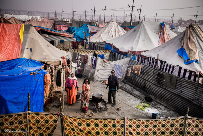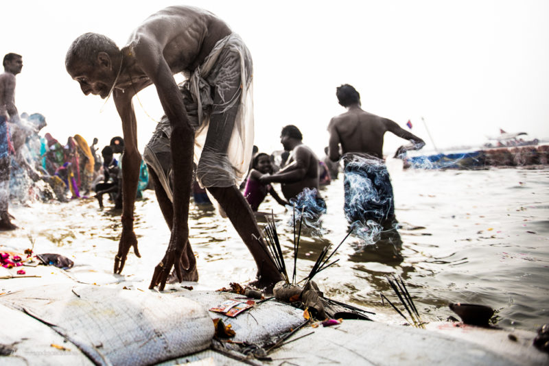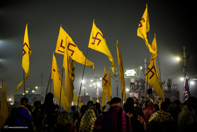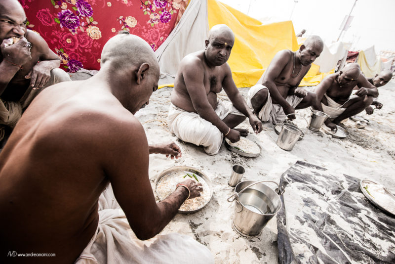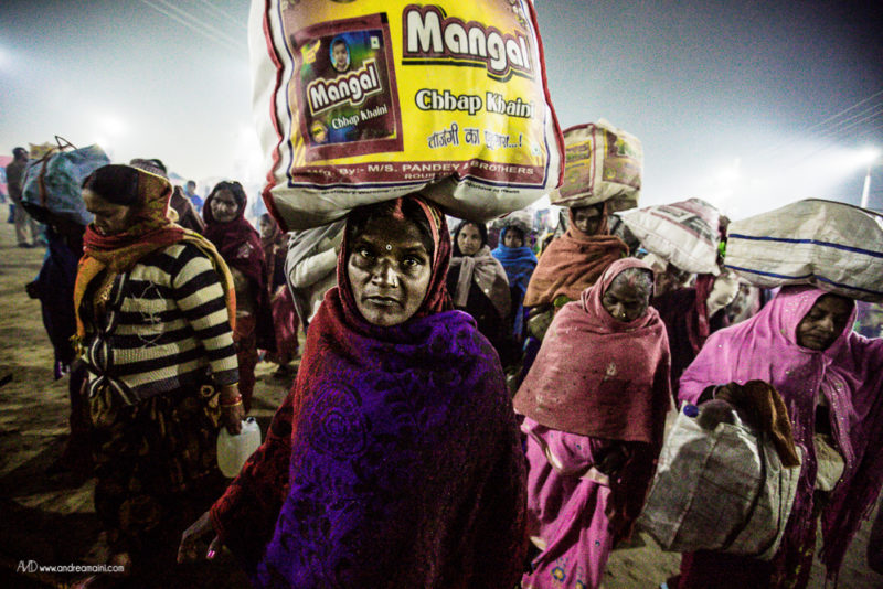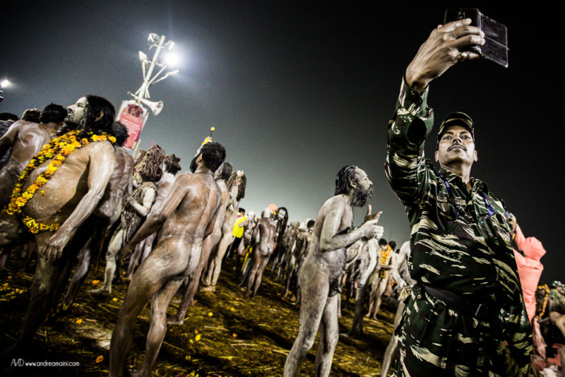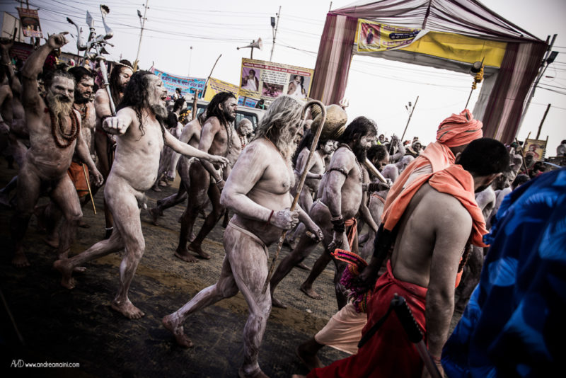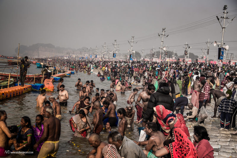 Il Kumbh Mela è un pellegrinaggio Hindu che più di 100 milioni di fedeli compiono per immergersi nelle acque di un fiume sacro. Si svolge a rotazione, ogni tre anni, in uno dei quattro luoghi dove si crede siano cadute gocce dell’acqua dell’immortalità da una brocca contesa tra divinità e demoni: Nashik, sul fiume Godavari; Ujjain sul Shipra; Haridwar sul Gange e a Allahabad, alla confluenza dei fiumi sacri Gange, Yamuna e Saraswati. All’edizione del 2019, a cavallo tra gennaio e febbraio, sono giunte a Allahabad circa 120 milioni di persone conferendo al Kumbh Mela il titolo di più grande raduno religioso del pianeta. Molti, arrivando da lontano, si accampano per giorni in enormi tende allestite per l’occasione da 6mila organizzazioni religiose. Sorge così una sorta di città temporanea di 32 chilometri quadrati con innumerevoli dormitori, templi, mense, ma anche diversi ospedali e decine di stazioni di polizia. Lungo le strade scorre ininterrotta una densa massa di persone; i fedeli, di ogni età, camminano portando in borse e sacchi le cose che servono a vivere lì, al Kumbh Mela, per giorni o settimane. Si spostano lenti e composti per raggiungere il luogo dove potranno finalmente bagnarsi nelle acque sacre. Il rito fondamentale è infatti il bagno rituale: gli indù credono che, immergendosi al fiume neigiorni propiziati da complessi calcoli astrologici, sia loro stessi che i propri antenati possano essere assolti dai peccati. Il pellegrinaggio favorisce quindi il conseguimento di una condizione spirituale superiore, fino ad offrire la straordinaria opportunità di interrompere il ciclo eterno delle reincarnazioni. L’evento-principe è il Mauni Amavasya, il bagno dei mistici Naga Baba – i protagonisti più importanti del Kumbh Mela cui spetta l’onore di aprire la sequenza delle abluzioni purificatrici. Asceti-guerrieri, armati del tridente di Shiva, nudi e cosparsi di cenere, incedono con irruenza verso il fiume alle prime luci dell’alba, esibendo con orgoglio i risultati di pratiche estreme di auto-mortificazione del proprio fisico. Possono tenere il braccio teso in alto per anni, fino a quando diviene una sorta di ramo rinsecchito e insensibile; non sedersi mai, deformando i piedi sotto il peso incessante del corpo; rimanere sempre in silenzio o torturare il proprio pene fino a perdere l’istinto di erezione. Tutto questo per accelerare il processo di illuminazione, così come l’uso costante di una miscela di tabacco e hashish li aiuta a “liberarsi dal velo dell’Illusione” e li fa vivere in uno costante stato di ebrezza. Ai miei occhi, per il più incredibile dei santoni e per il più umile dei fedeli, per il dantesco quadro d’insieme e per ogni poetico e crudo dettaglio, il Kumbh Mela è stato, come lo descrisse Mark Twain nel 1895, “un'esperienza al di là di ogni immaginazione”.