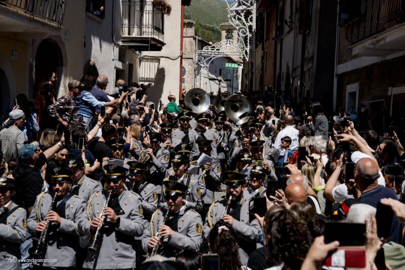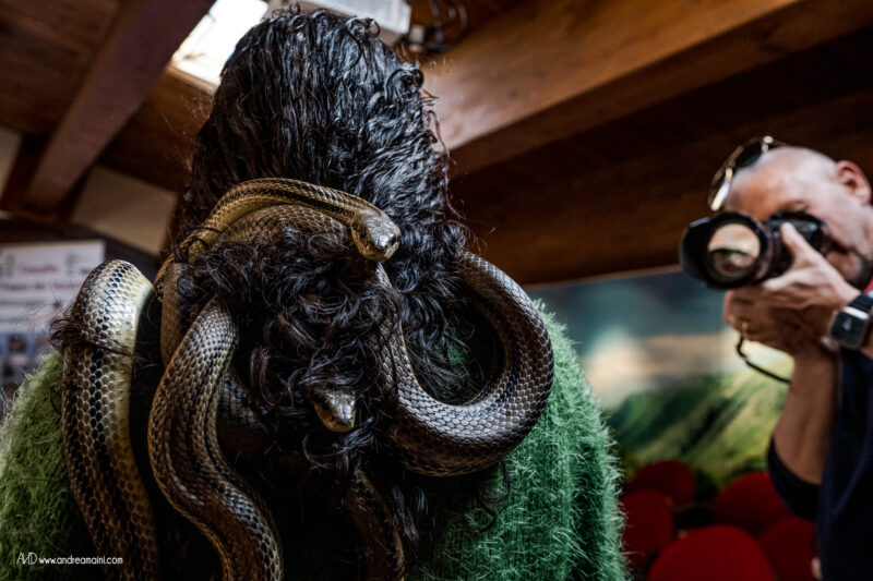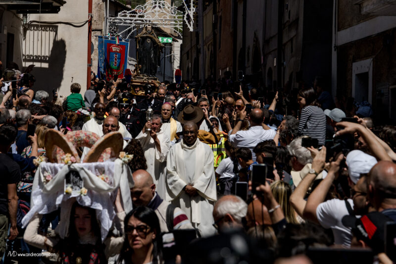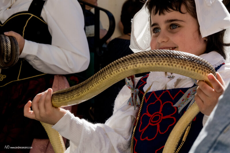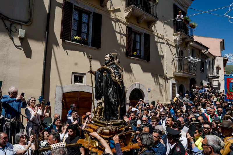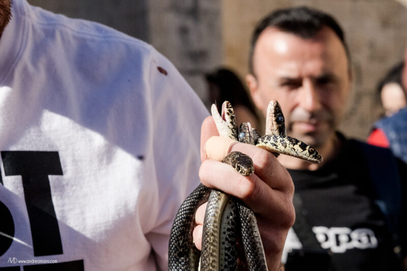 A mezzogiorno, dopo la Santa Messa, fatta uscire dalla porta della chiesa, inizia la processione della statua del santo invasa dalle serpi catturate nei giorni prima.